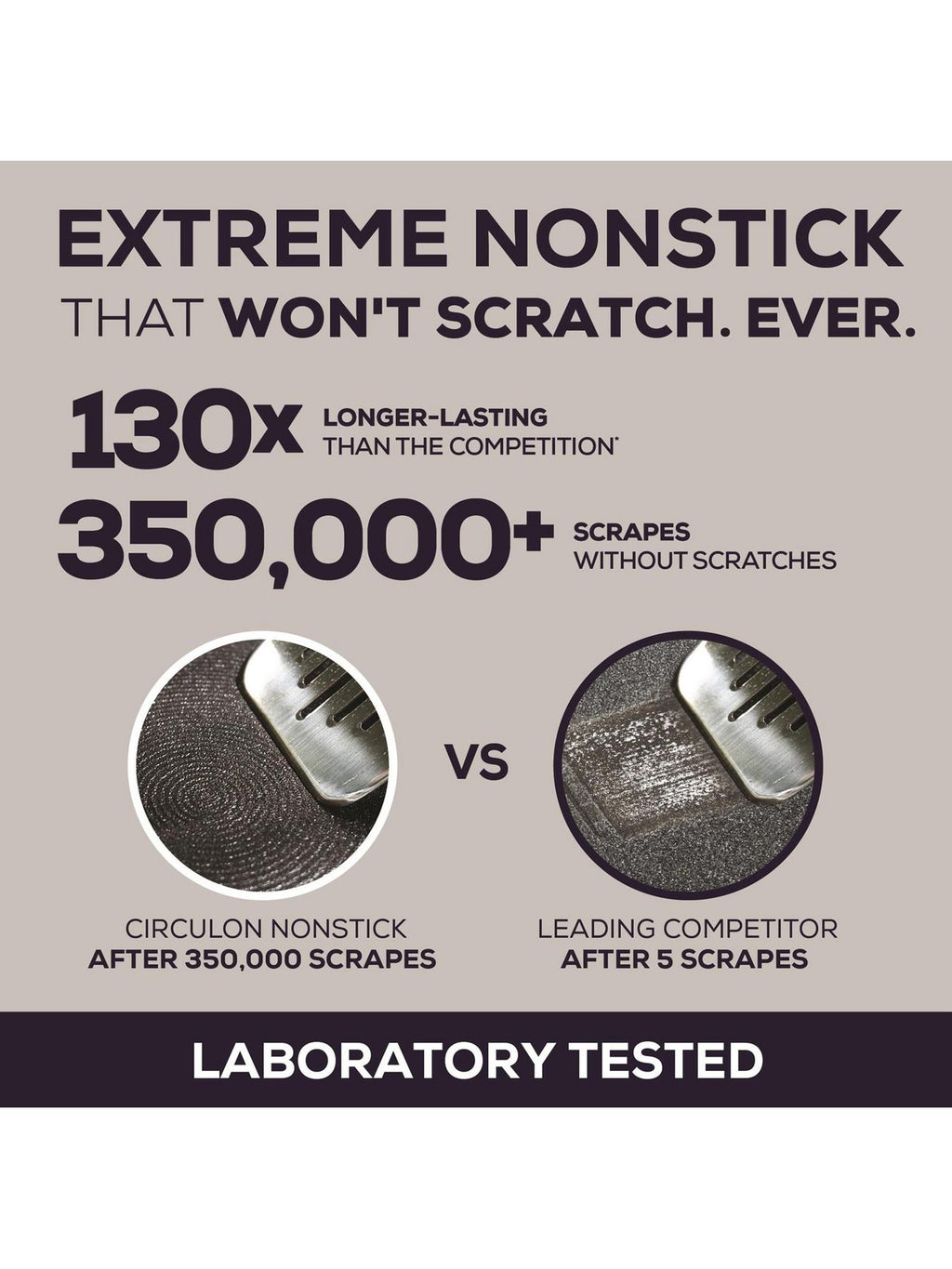 Circulon ScratchDefense A1 Collection with Extreme Non-Stick - that won't scratch, ever. Featuring ground-breaking Non-Stick technology, used in the Aerospace industry to provide extreme Non-Stick durability, eliminate scratching, stick, and flaking. Circulon ScratchDefense Extreme Non-Stick lasts 130x longer than the competition with laboratory tests simulating 200+ years of daily wear and tear.