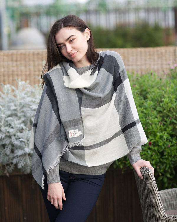 Worsted Wrap - Grey CheckWorsted Wrap - Grey Check