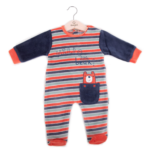 Stripe All In One, Teddy & Hat - NavyStripe All In One, Teddy & Hat - Navy
