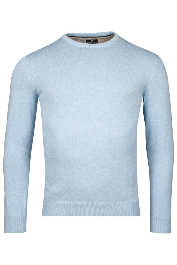 Baileys Plain Round Neck Jumper - Sky Blue Melange