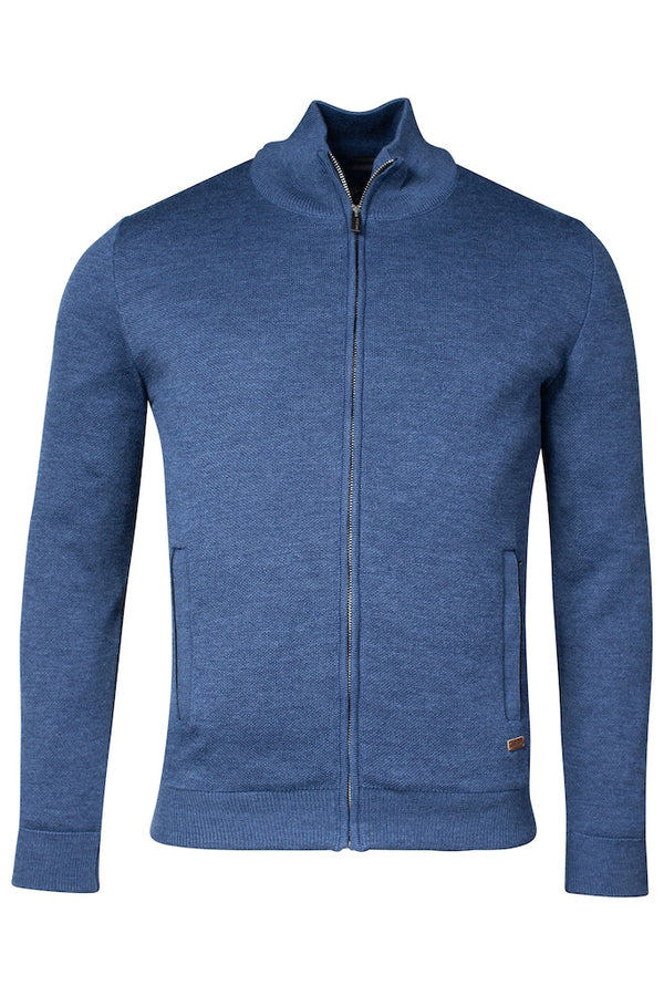 Baileys Wool Mix Plain Full Zip Jumper - Deep Denim Blue