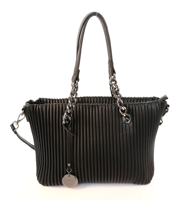 Ribbed Double Chain Handle Tote Bag - BlackRibbed Double Chain Handle Tote Bag - Black