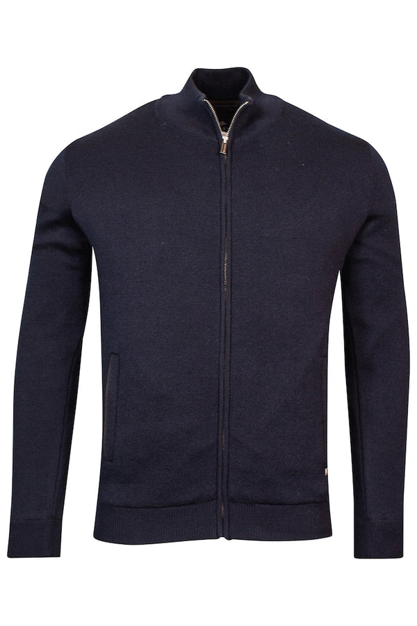 Baileys Wool Mix Plain Full Zip Jumper - Navy