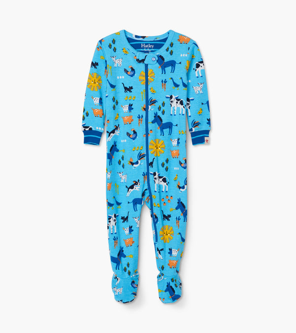 Barnyard Friends Cotton Romper - BlueBarnyard Friends Cotton Romper - Blue