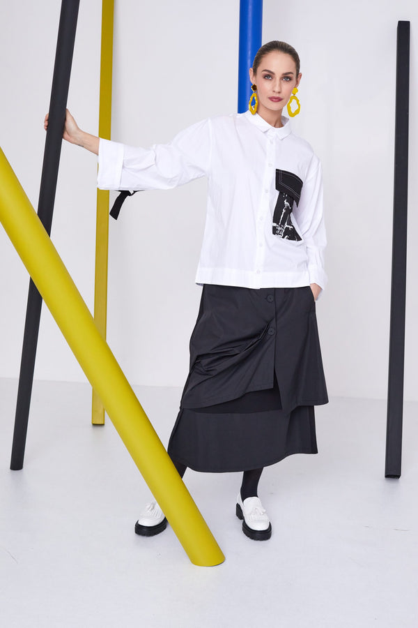 Jacquard Colour Block Skirt - Black/grey/vanilla