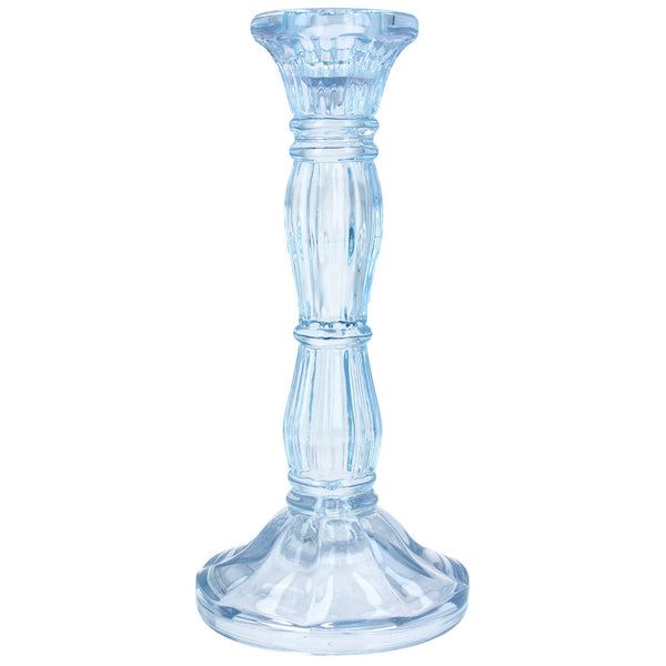 Gisela Graham Pastel Blue Glass Candlestick Medium 15cm