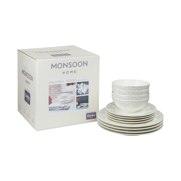 Denby Monsoon Filigree Silver 12 Piece Box Set