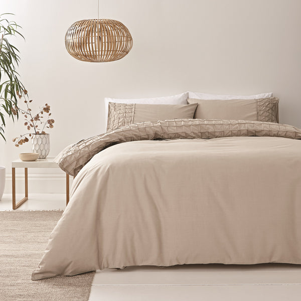 Cotton Sateen Satin Stripe Duvet Cover Set - Oyster