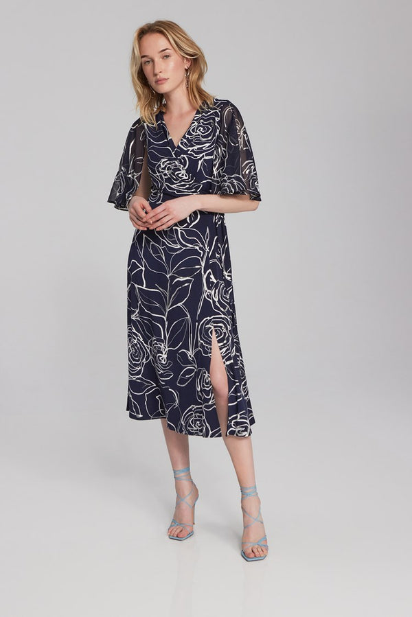 Joseph Ribkoff Floral Print Chiffon Dress - Midnight Blue/vanilla