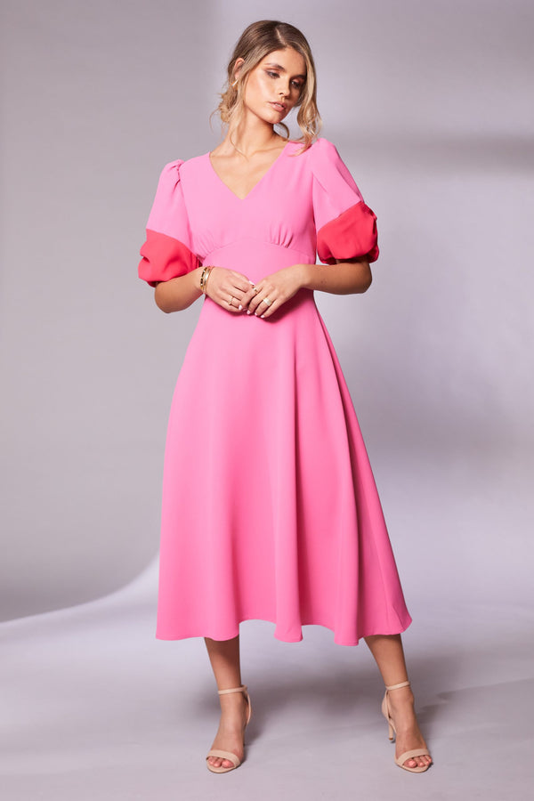 Kate Cooper Contrast Cuff V Neck Dress - Pink
