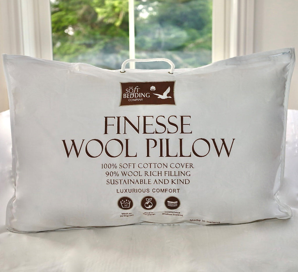 90% Wool Pillow. Wool naturally regulates temperature keeping you cool in summer and warm in winter. A natural and sustainable fibre, it is environmentally friendly, resistant to dust mites and to the build- up of micro bacteria making it naturally hypoallergenic.