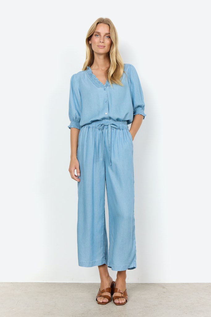 Liv Drawstring Crop Trouser - Light Blue Denim