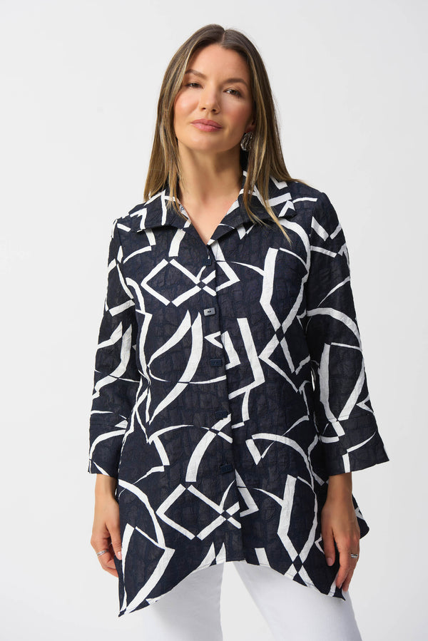 Joseph Ribkoff Jacquard Abstract Jacket - Midnight Blue/vanilla