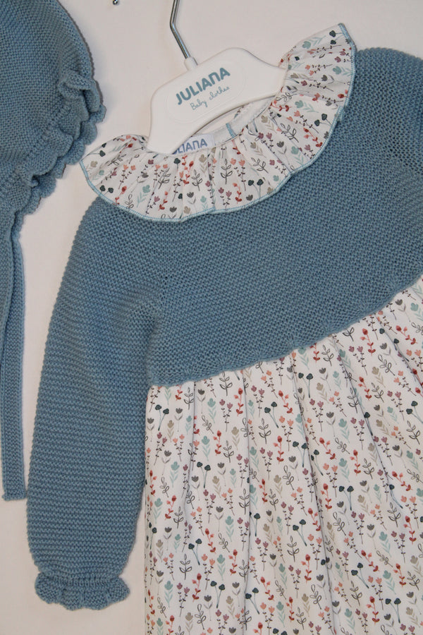 Juliana Baby Dress and Bonnet - Cloud Blue