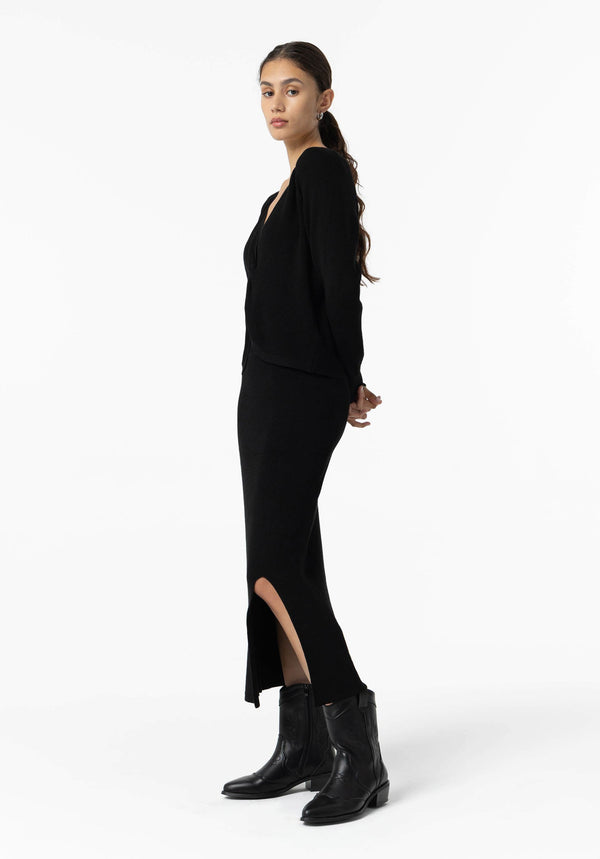 Jacquard Colour Block Skirt - Black/grey/vanilla