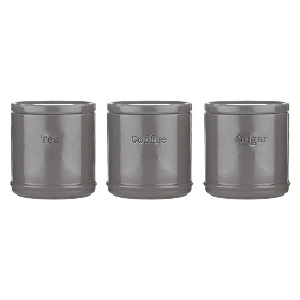 The Price & Kensington Set of 3 Accents Charcoal Tea, Coffee, and Sugar storage jars are perfect for organising your kitchen. They have been crafted from high-quality ceramic and come with a silicone seal to ensure the contents stay fresher for longer. They have a high gloss finish and text detailing to the front that helps to identify the contents. They are suitable for the microwave and dishwasher.