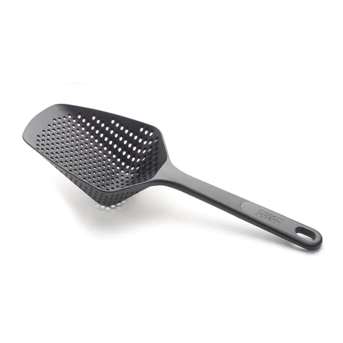 - Pan hooks allow tool to rest on the side of a pan to drain