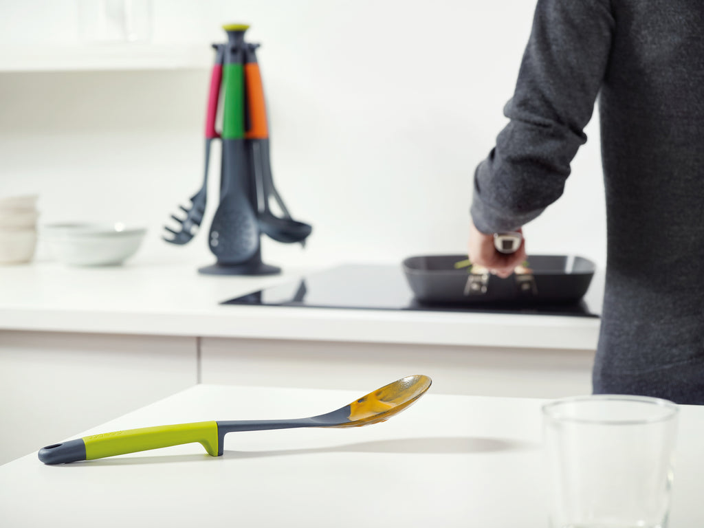 Set Includes: 1x Slotted Spoon, 1x Spaghetti Server, 1x Solid Spoon, 1x Ladel, 1x Slotted Turner, 1x Flexible Turner and 1x Rotating Stand.