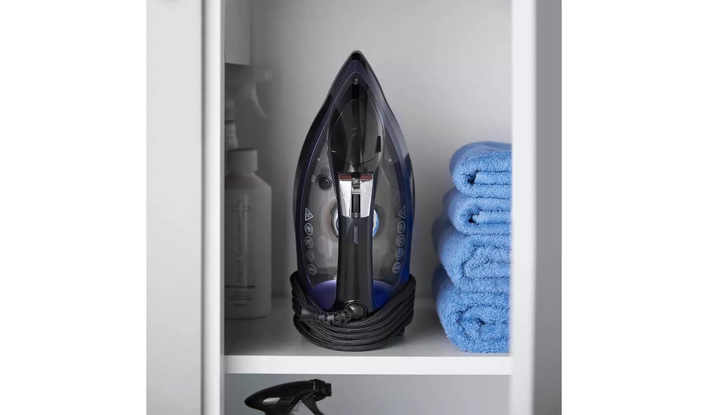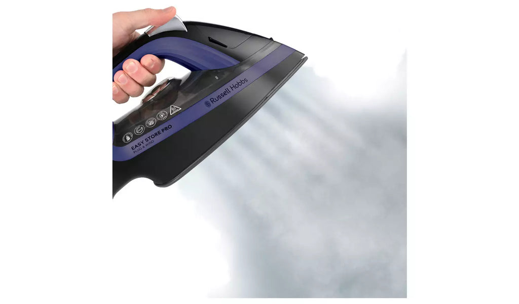 When it comes to 'neat and tidy' the Russell Hobbs Easy Store Pro Plug and Wind iron tackles the tricky truth of storage. Not only does it deliver the uncompromising performance you'd expect but storing the iron neatly and securely has been tackled head on. Simply wrap the cord neatly around the base of the iron and clip the plug neatly into its integrated holder with no loose cords, making the most of your cupboard space. It's powered by 2400W, so hard to iron fabrics won't stand a chance.