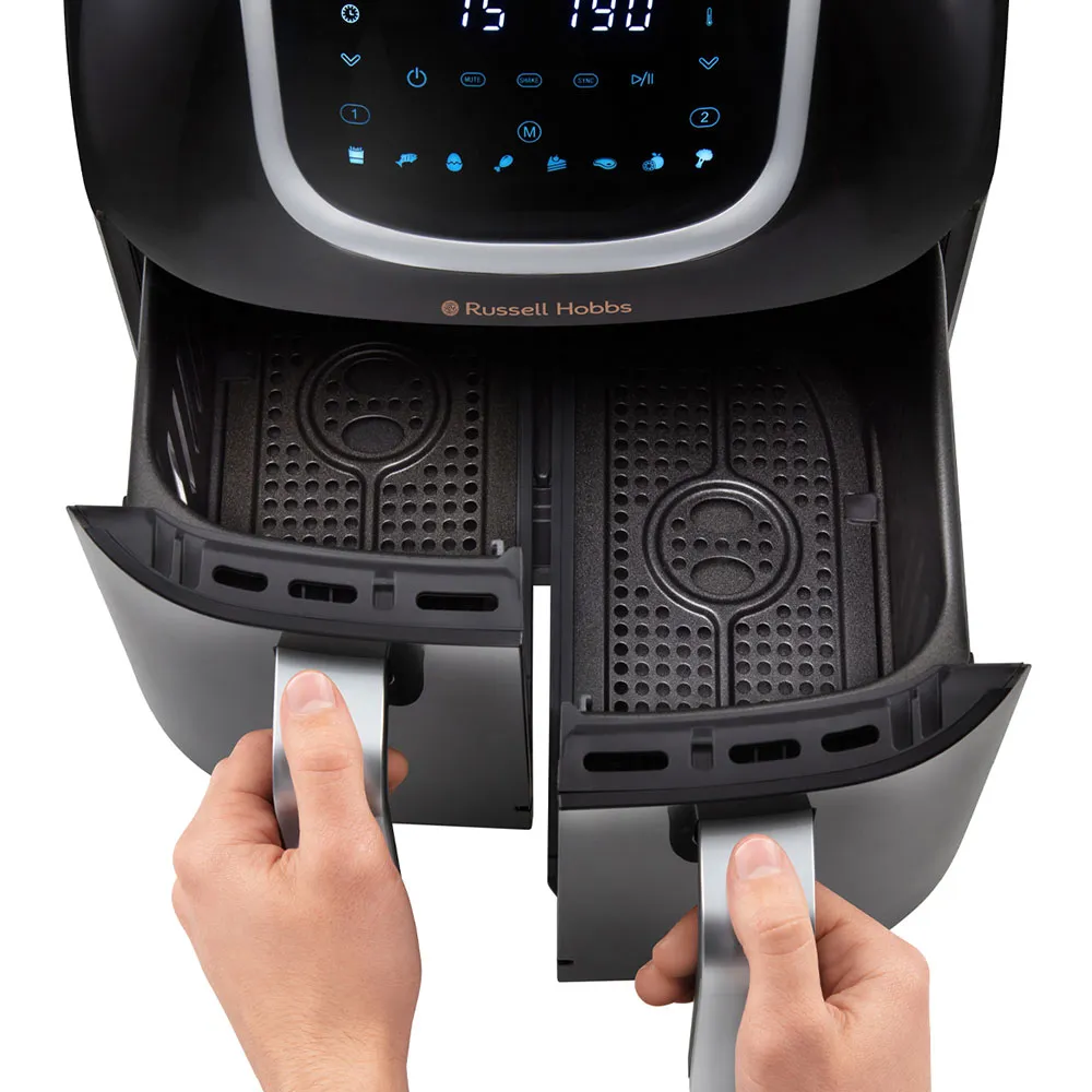 Choose from two 4.25L cooking compartments or combin both to make one 8.5L basket. The Russell Hobbs Satisfry Snappi Dual Basket Air Fryer is your mealtime superhero.