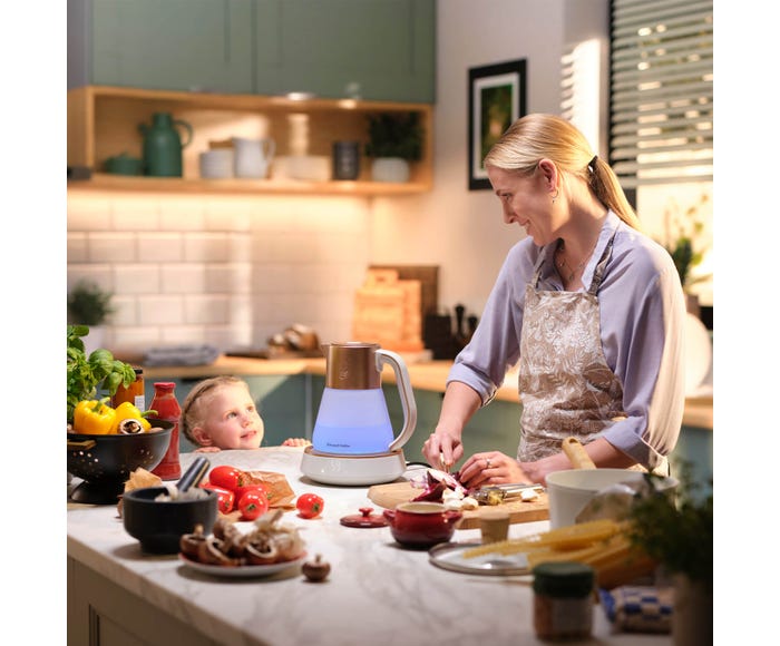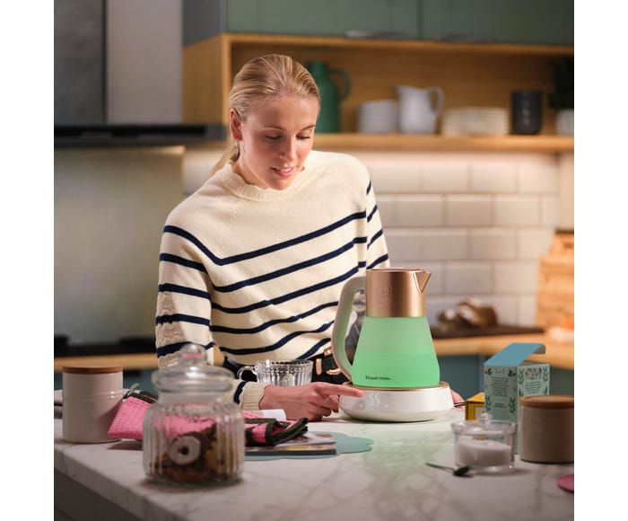 With its premium frosted glass body, sleek copper-coloured accents and digital display with touch control, the Russell Hobbs Calm Kettle makes for an elegant design choice on your kitchen worktop too.