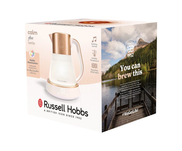 With a range of gentle coloured lights illuminating the 1.7L glass kettle and optional soothing sounds, enjoy a moment of me-time with the Russell Hobbs Calm Kettle.