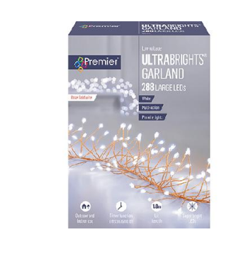 Elevate your decorative lighting with the 288 White LED Rose Wire Ultra Bright Garland, meticulously crafted for both indoor and outdoor environments. This garland features 288 brilliantly luminous white LEDs, intricately arranged on a flexible rose wire for seamless installation and versatile design applications. Designed for expert use, it includes an integrated timer function, allowing precise control over lighting schedules to enhance energy efficiency and convenience. Its durable construction ensures reliable performance in various weather conditions, making it an ideal choice for professional decorators seeking high-quality, long-lasting illumination solutions.