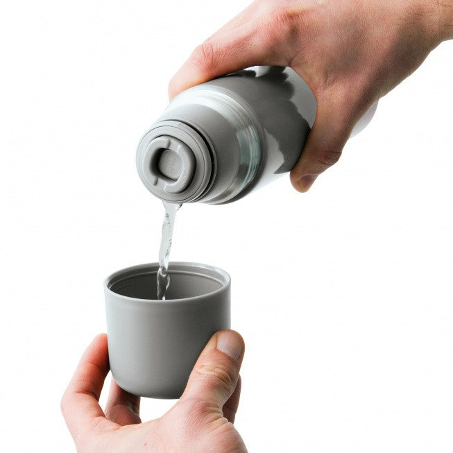 Robust and stylish, this convenient travel thermos is the perfect partner to take your favourite hot or cold beverage with you wherever you go. The double-walled construction keeps your drink hot or cold for several hours while the durable stainless steel stays cool to the touch. Whenever you’re thirsty, just use the easy push-to-drink system and safely pour yourself a drink in the cover that doubles as a handy drinking cup.