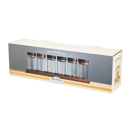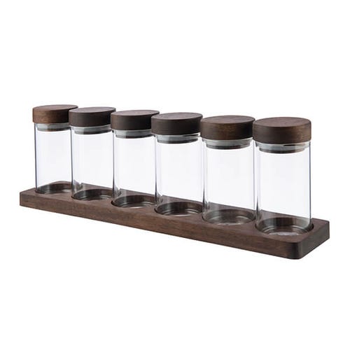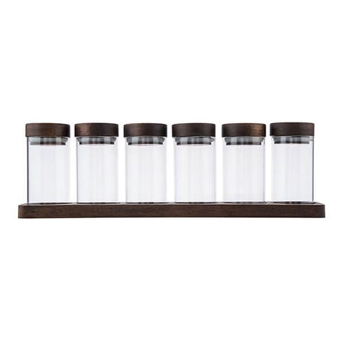 The Artisan Street storage jar set are made from ceramic with dark stain acacia wood lids. Each of the ceramic jars has a different pattern embossed into the surface. The acacia wood lids fit perfectly for a airtight seal and look stylish on display together.