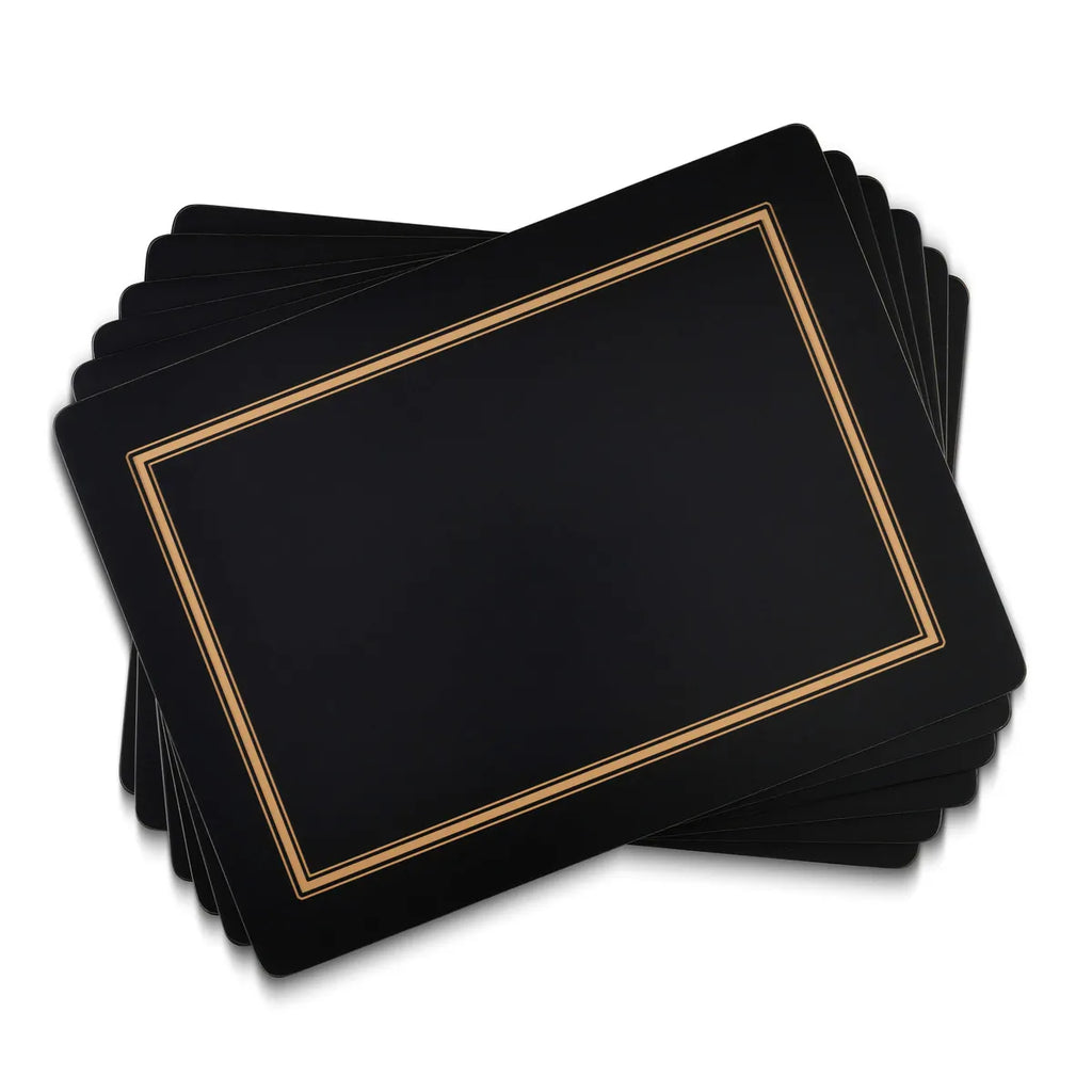 A classic and elegant design for dining at any occasions, these black placemats feature 5mm board totally sealed with a high quality coating that is both stain resistant and heat resistant to 100 degrees. Each mat is finished with a hardwearing and insulating cork back to protect surfaces. In a standard size, this set of six placemats can be paired with the matching coasters (available separately) for a smart and sophisticated table setting.