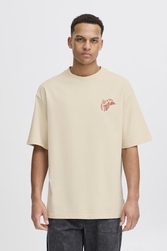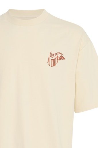 - Let's take a trip soon printed on chest.