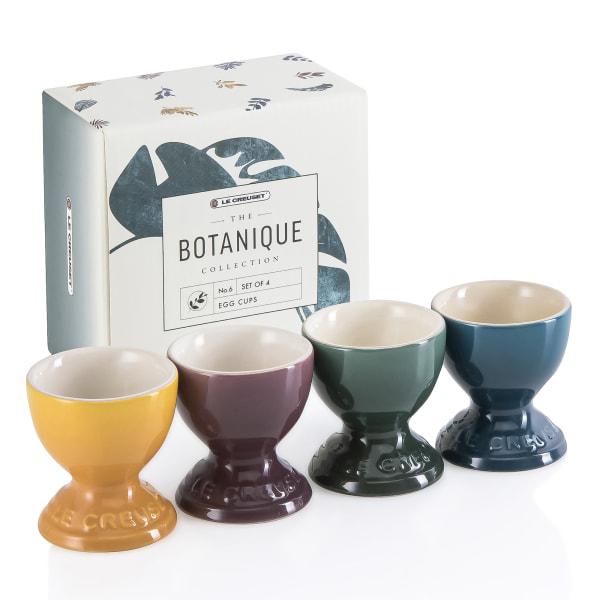 Simple and oh-so-satisfying, few things beat a boiled egg. This set of four stoneware egg cups lets you serve yours in style. Part of our Botanique Collection, these egg cups feature four different nature-drenched hues: Fig, Nectar, Deep Teal & Artichaut. Presented in a gorgeous botanical-themed box, they're a ready-to-go gift.
