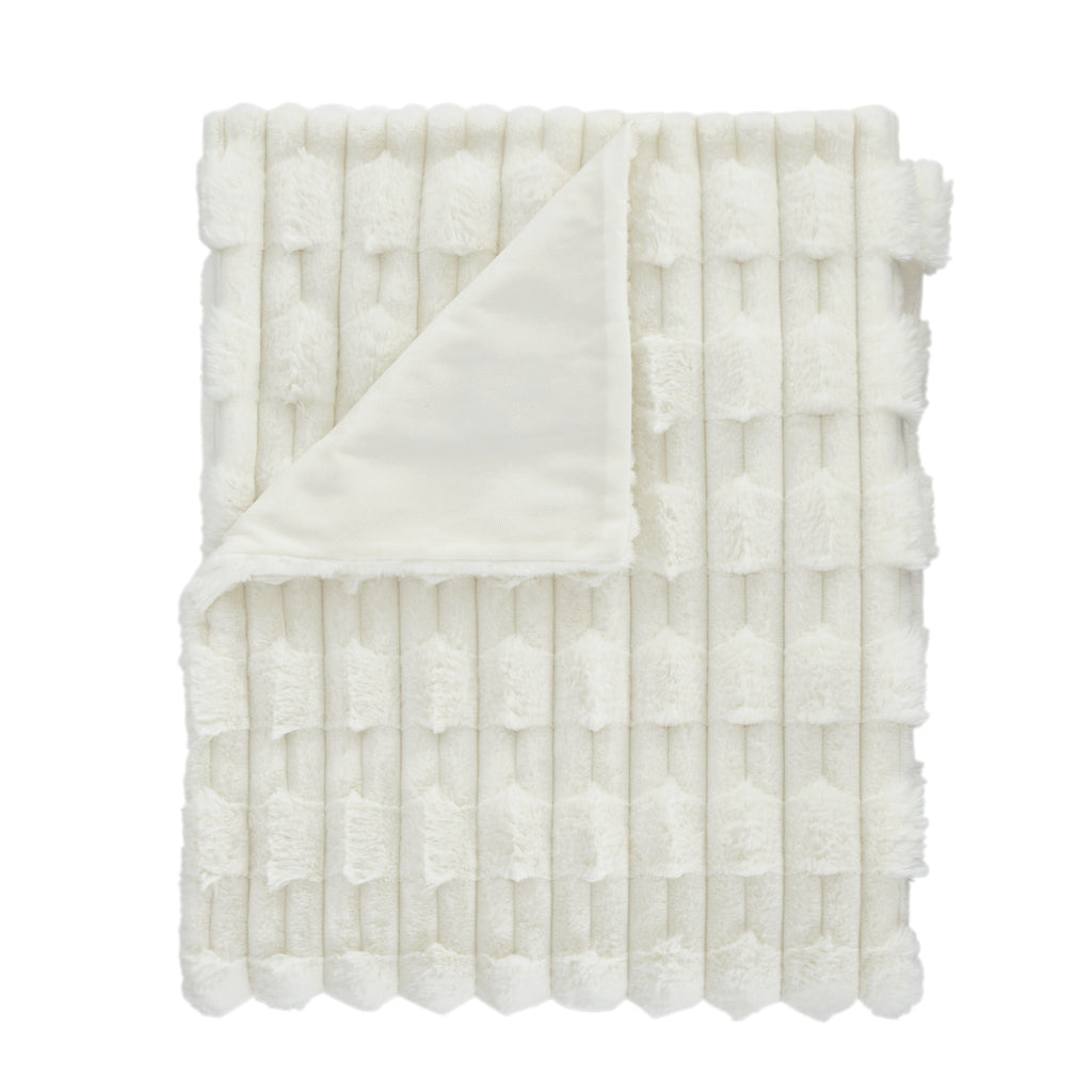 Carved Faux Fur Throw 150 x 200cm - Cream
