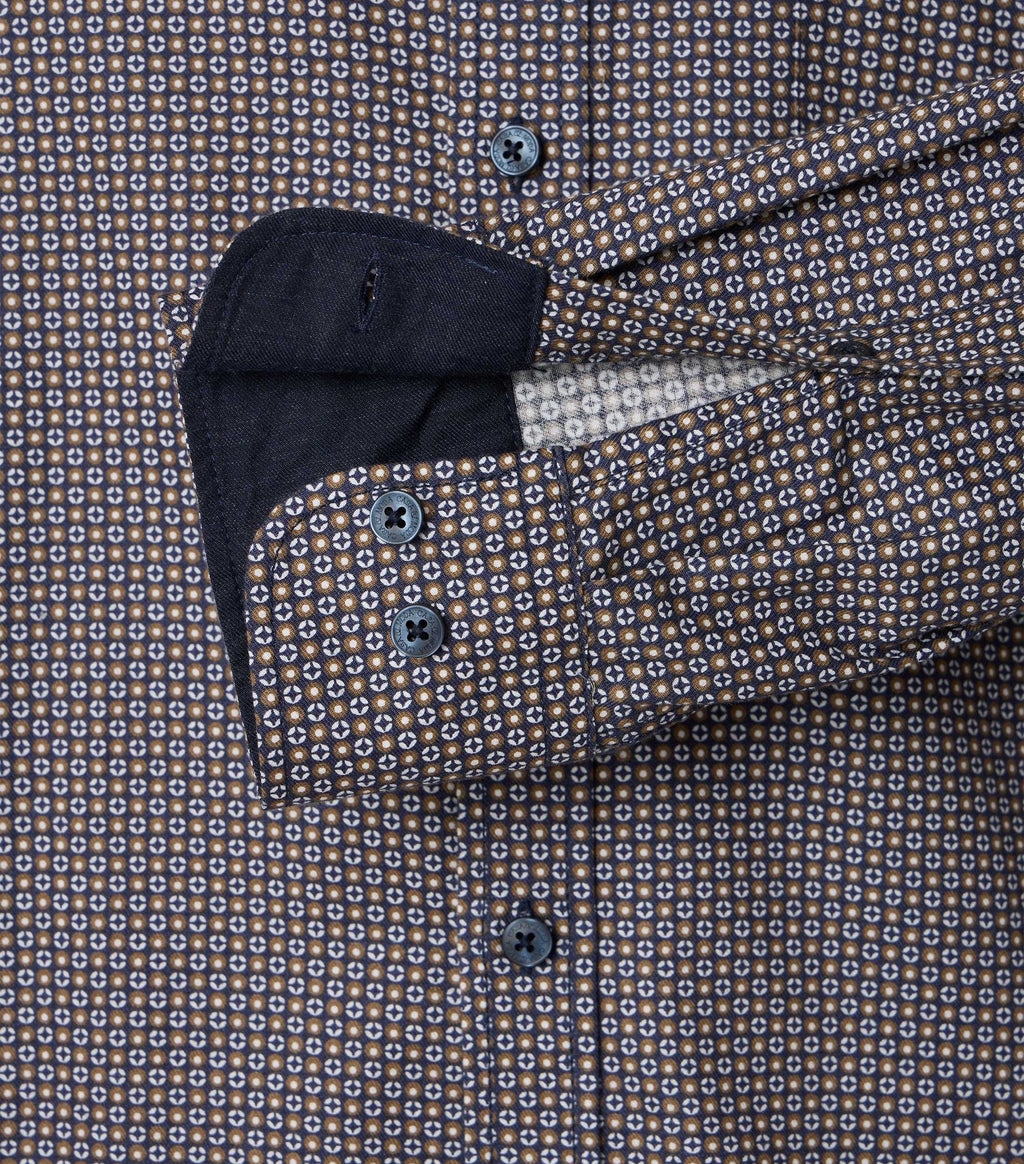 - Button down collar.