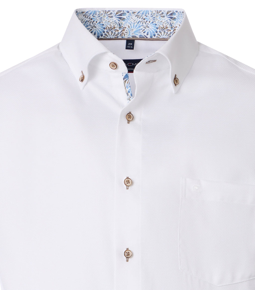 - Button down collar.