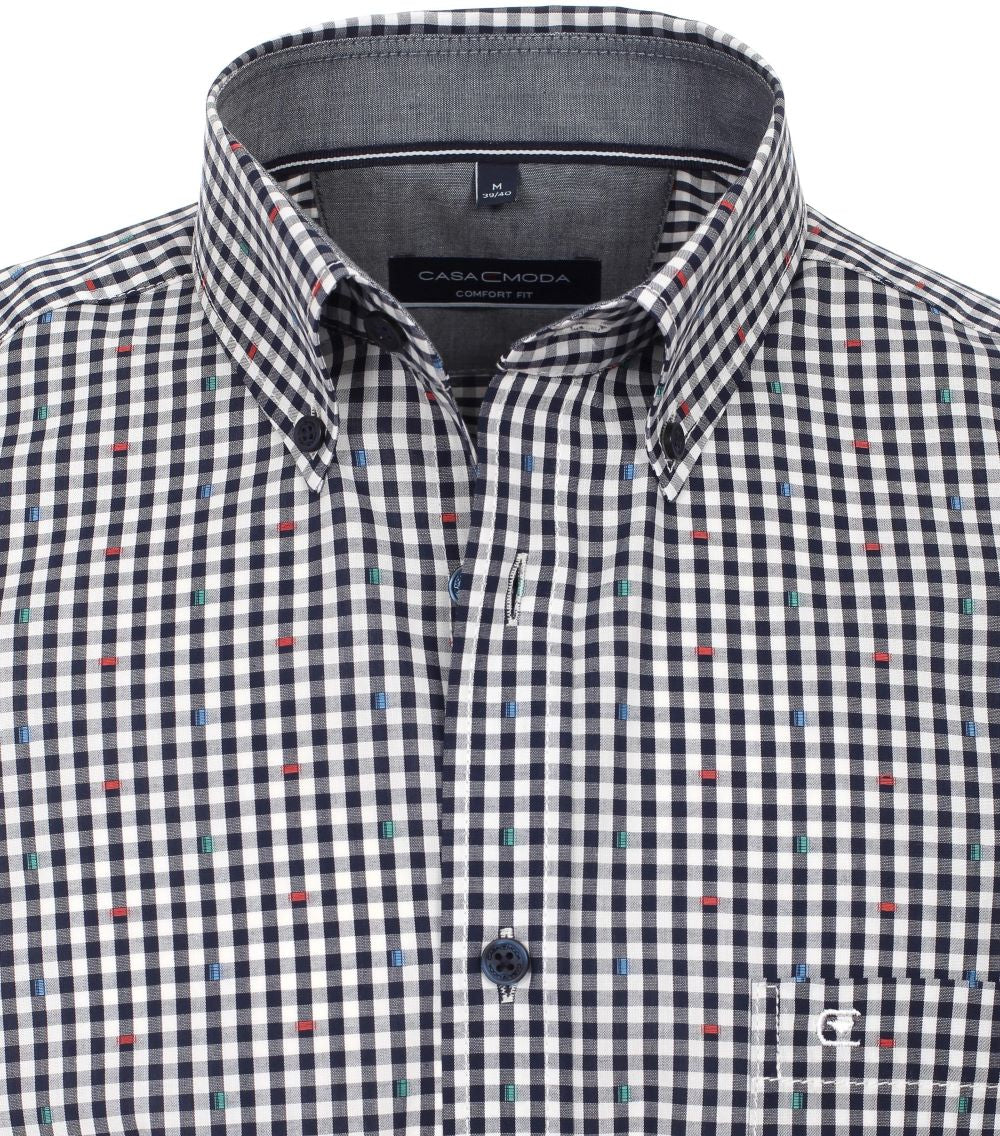 Comfort Fit Button Down Check Shirt - Blue