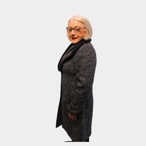 Herringbone Fur Collar Coat - Blue