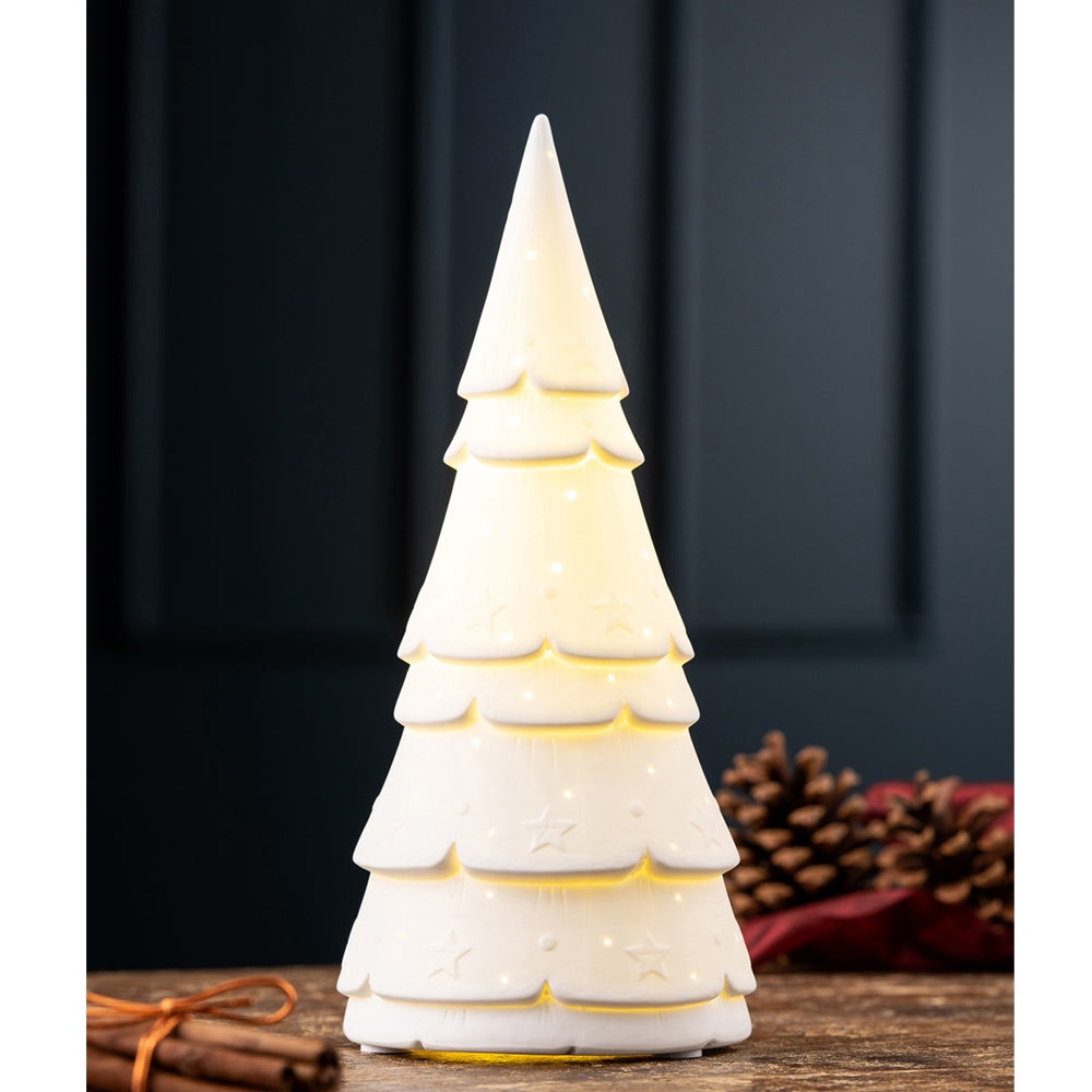 Belleek Living Luminaire lamps emit a soft warm glow highlighting the delicate surface decoration and piercings, creating beautiful mood lighting for your home. The Christmas Fir Tree Luminaire features embossed stars, piercings and is the ideal piece to add some elegantly festive yet soft mood lighting this season.