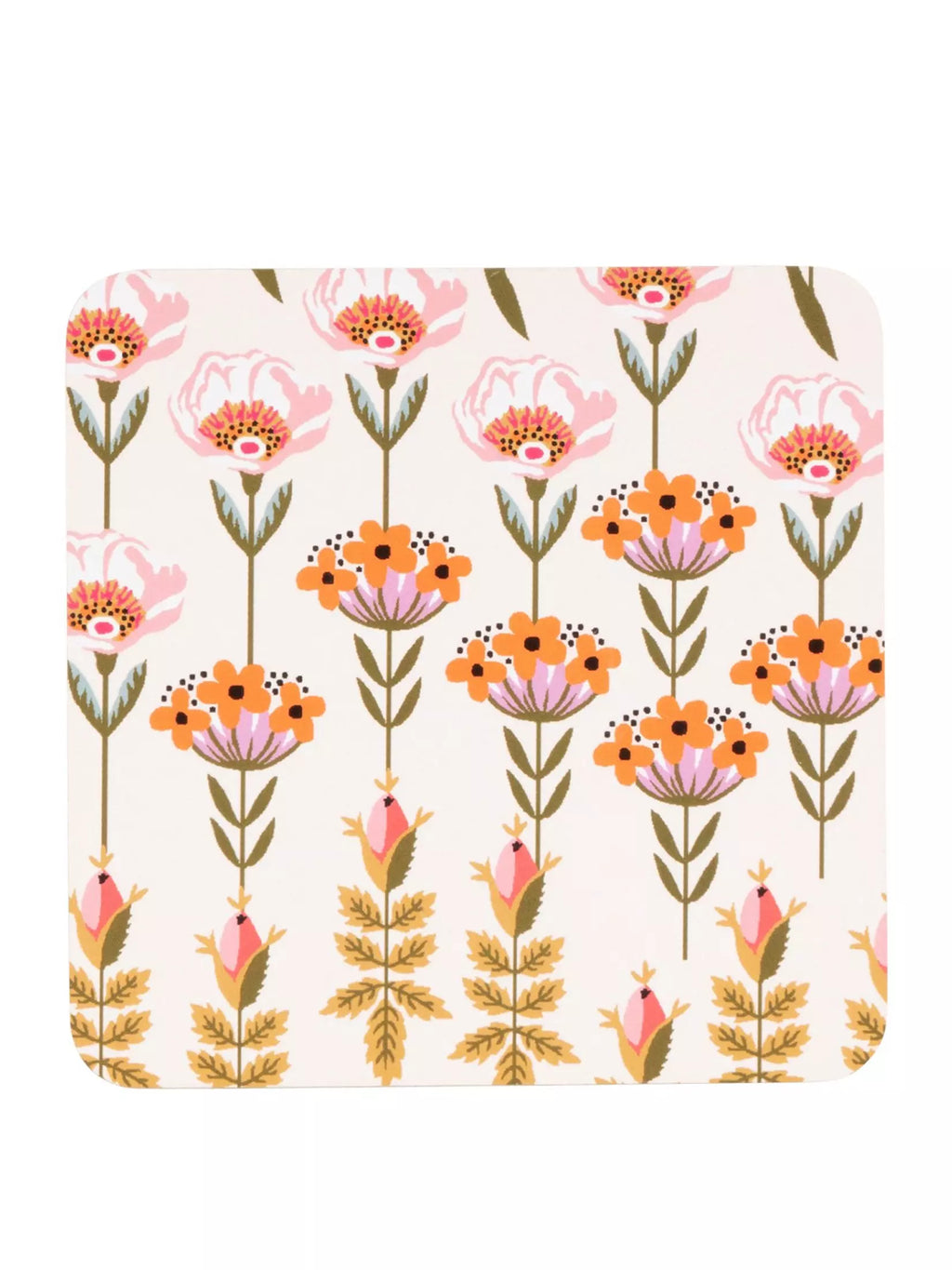 These pretty floral print coasters will look lovely wherever you place them around your home. We think they look their absolute best next to their matching placemats for a dreamy table setting, pretty in pink. Cork-backed to protect surfaces from damage. Simply wipe clean after use.
