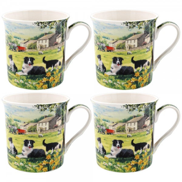 Collie & Sheep Set of 4 Mugs