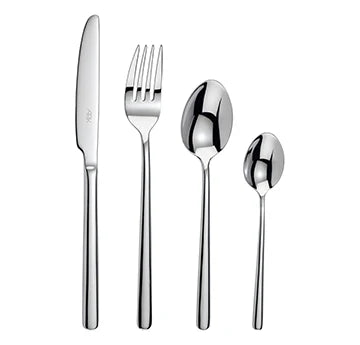 A practical 16-piece cutlery set serving four people with style and convenience. Each place setting includes a table knife, fork, dessert spoon, and teaspoon—everything you need for everyday dining. The Contessa design features sleek, rounded handles with a contemporary aesthetic that complements any table. Dishwasher safe for effortless cleaning and maintenance.