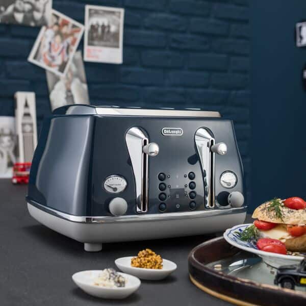 Embody metropolitan chic with this sophisticated 4-slice toaster in blue from De'Longhi's Icona Capitals toaster range. Stylish Italian form is enhanced by a glossy, rich blue finish