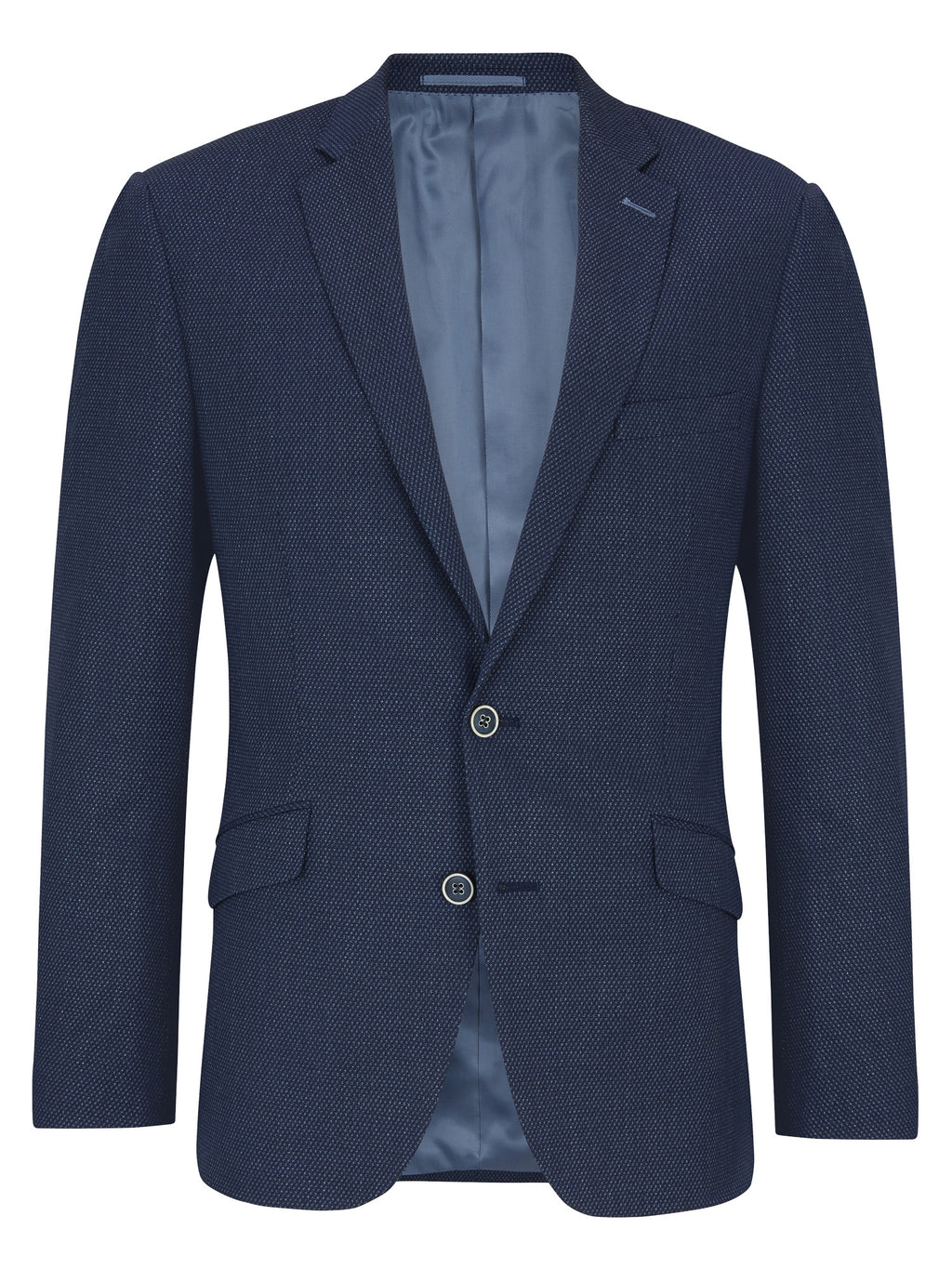 - Slim notched lapel.