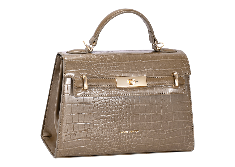 Faux Crocodile Top Handle Bag - Warm Taupe