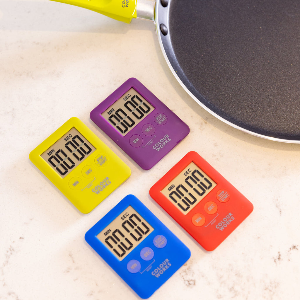 Available in 7 of the key Colourworks colours, the digital timers can be co-ordinated with a number of other items in the Colourworks range, allowing you to mix, match and co-ordinate your kitchen in a striking array of colours.