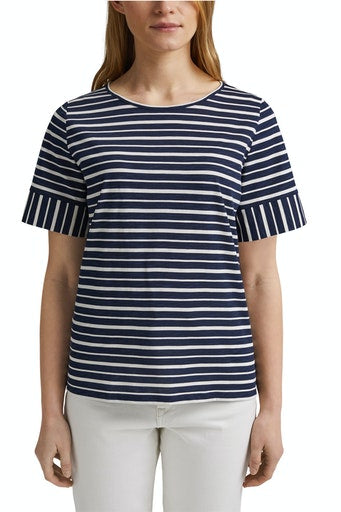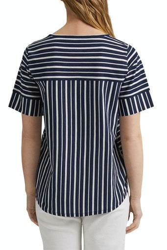 - Contrast vertical stripes on cuff and back panel.