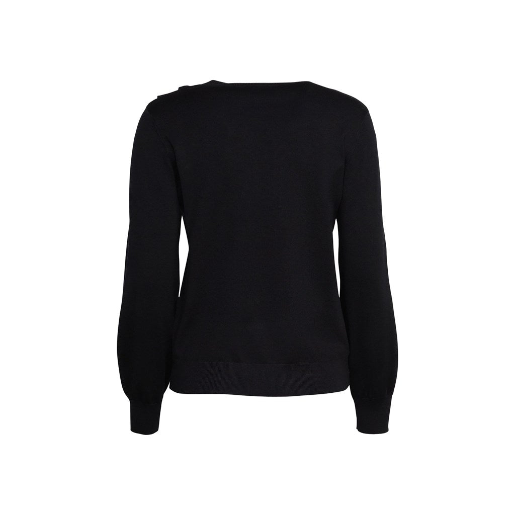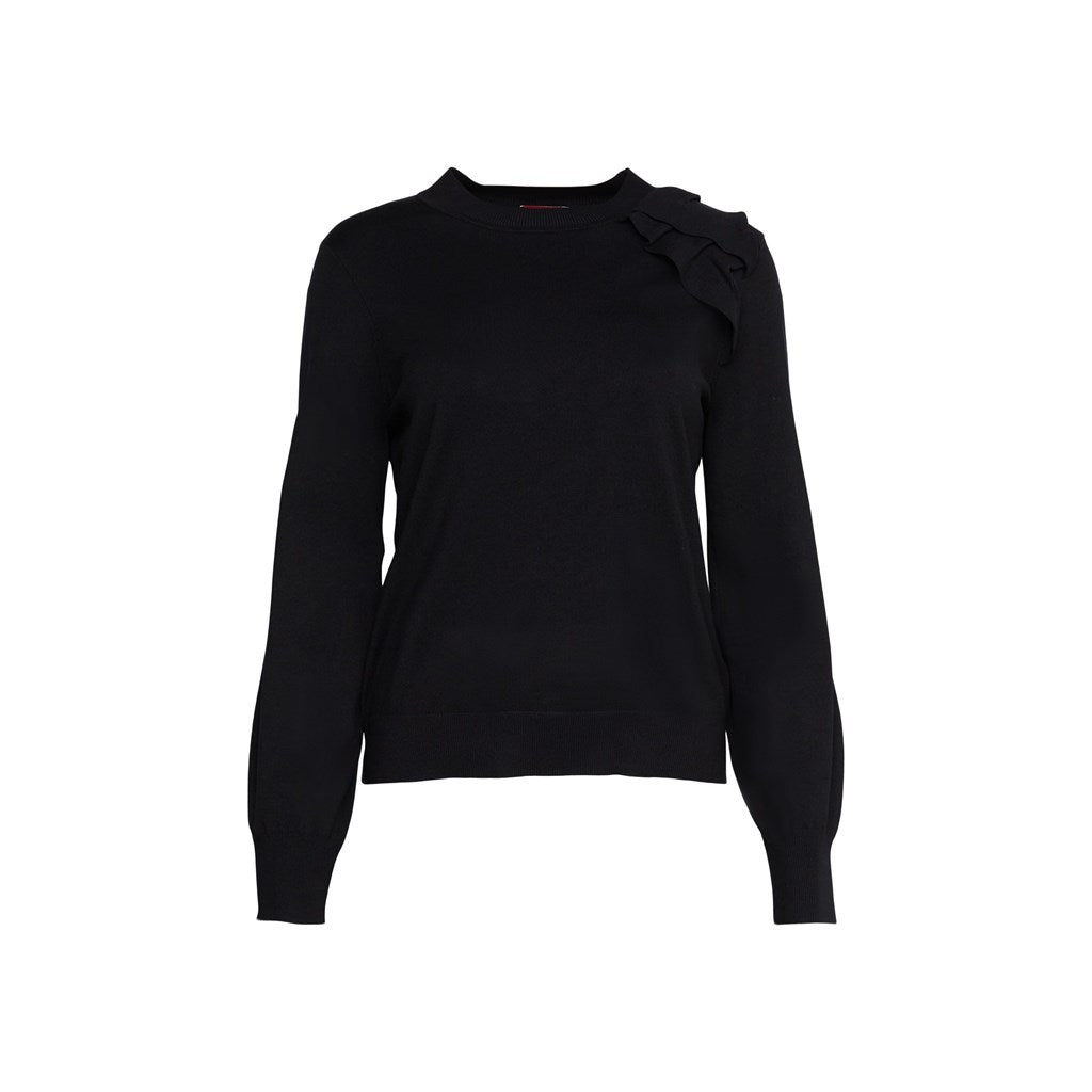 - Ruffle detail on shoulder.
