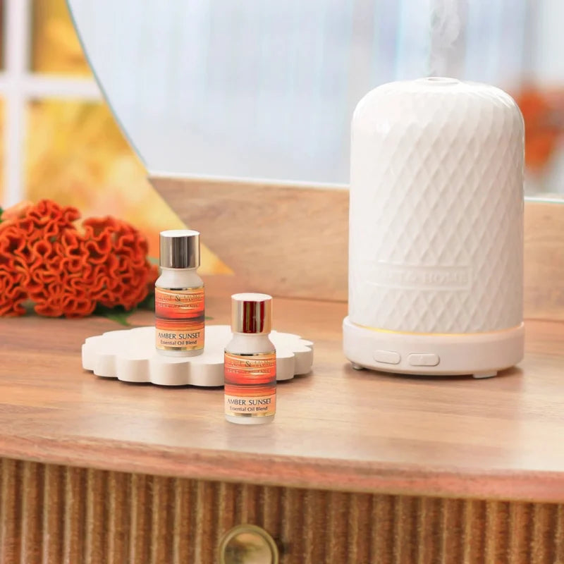 Essential oils have long been recognised for their therapeutic benefits to health. Helping to reduce anxiety, lift your mood and aid sleep. Heart and home essential oil blends contain extremely concentrated flower and plant extracts. Use with the Heart and Home ultrasonic diffuser for the ultimate fragrance experience. The whisper-quiet diffuser gently and instantly disperses a fine vapour into the air for you to savour.