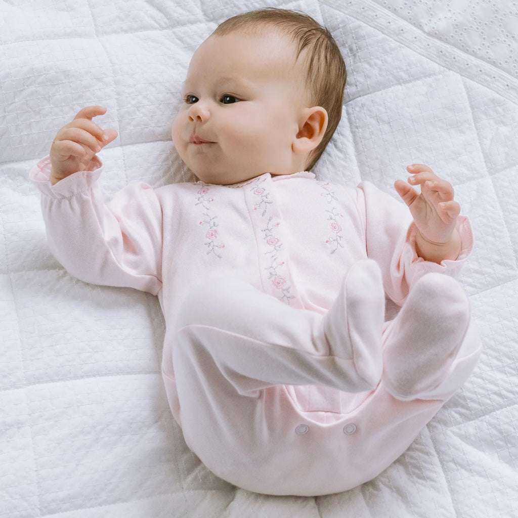 - Full back and leg opening with poppers for easy changing.