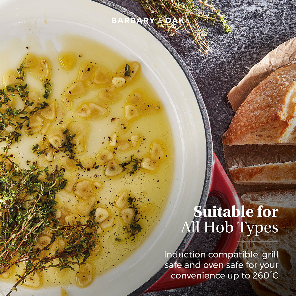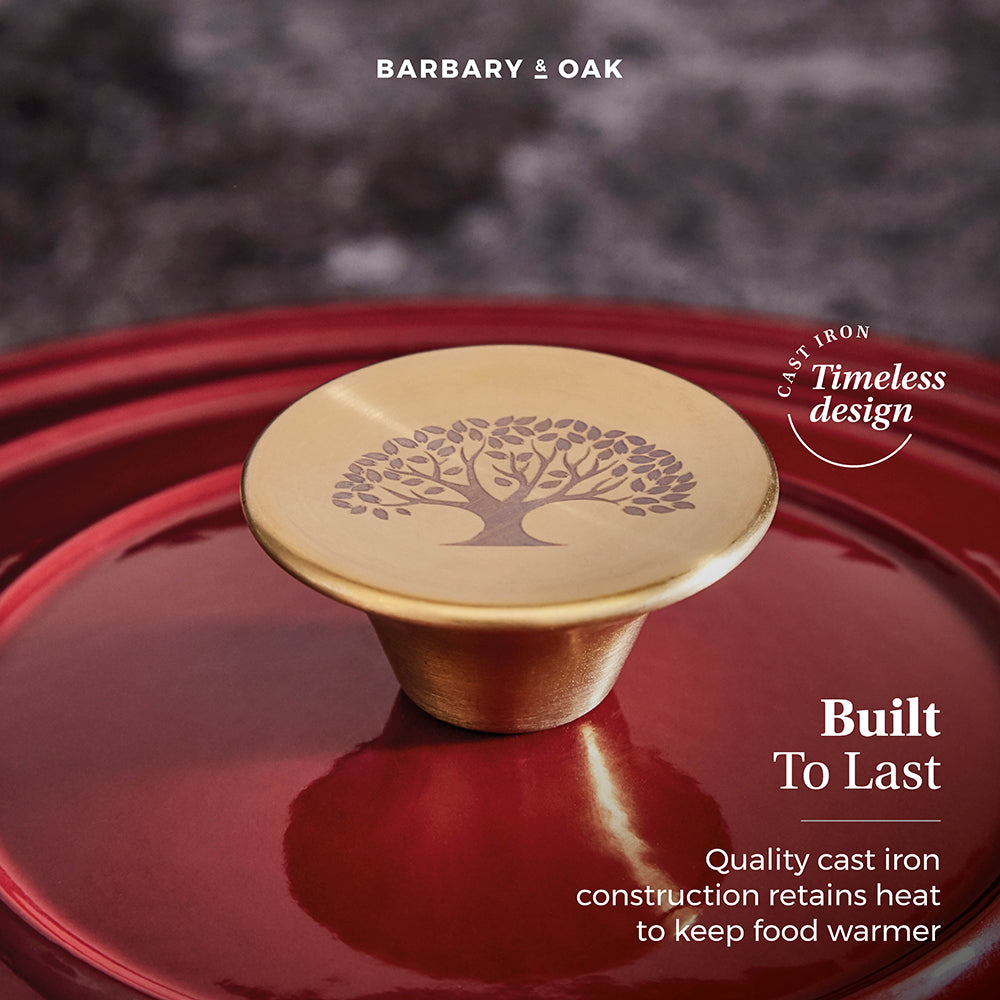 This Barbary Oak 28cm Shallow Casserole Pan is a reliable cooking companion that any avid cook needs in their kitchen. Designed in four colourways, Limoges Blue, Bordeaux Red, Camembert Cream and Verdigris Green, the pan features quality cast iron that is durable and built to last. Cast iron retains heat, meaning it keeps food warmer for longer making it perfect for those who love to make delicious casseroles for all the family. The enamel interior prevents food from sticking, is easy to clean, and will not absorb odours and flavours. Versatile in design, the casserole pan is suitable for all hob types including induction. A domed lid is included, which helps lock in and retain all the moisture to ensure your food is tender with an enhanced flavour. Crafted with 2 handles, they provide an easier grip for carrying food from the oven to the table.